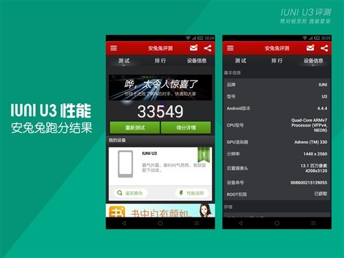 目前安卓手机市场中,想走高端旗舰路线,骁龙801处理器是最佳性能解决方案,IUNI U3搭载的是主频2.3GHz 8974AA 骁龙801四核处理器。通过实际测试来看性能兼容性优良,其实性能方面表现也很到位,接下来让我们简单看几组性能测试。