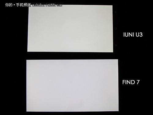 通过翻拍测试图片我们可以看到IUNI U3的屏幕饱和度要比OPPO Find7更好,但屏幕亮度明显如不如OPPO Find 7,在测试图片中我们可以看到OPPO Find 7在白色当中可以亮,在其它彩色当中有明显泛白的现象。亮度高的好处可以在强光下显示效果更好,在强光下IUNI U3就有些照镜子的感觉了。但不论怎样,二者都是一块非常优秀的2K屏幕。至于2K屏幕是否费电问题,我们之前在VIVO手机上也进行过测试,实验证明 2K屏幕功耗与1080P屏幕差不错,并且本次IUNI U3采用了第二代2K屏幕,还有省电作用。