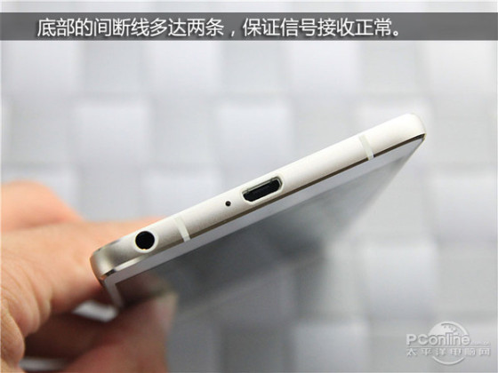 中框采用了航空级别的铝镁合金材质,在金属与塑料连接的部位,应用了NMT纳米成型技术。底部的Micro USB接口支持OTG功能,数据传输更方便。