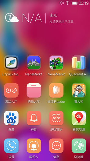 界面的整体样式应用了这段时间非常热门的扁平化设计,图标与界面搭配色彩缤纷,操作起来让人心情愉快,延续了前代Amigo版本的优点。