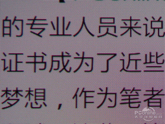 从上图可以看到,在正常距离观看屏幕时得益于高像素的原因还是比较细腻的,只在放大看时文字边缘出现锯齿感,但这对一般用户来讲影响还是不大的,因为大家一般情况下都是以正常距离观看屏幕。