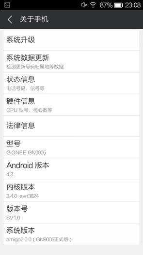 | 操作系统 | Amigo 2.0(Android 4.3) |
