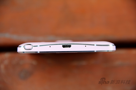 如果仔细观察你会发现,Note 4底部中框线条呈流线型,中间为天线开启的缺口并未影响整体造型。不过Note 4并未延续Note 3的USB 3.0接口,反而采用了USB 2.0标准。金属斜面切割释放出了金属原本的色泽,提升了整体的视觉亮度。