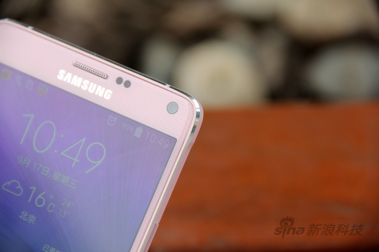 早在Note 3发布的时候,就有人说其棱角角度接近S2,Note 4的四个棱角角度相比Note 3更大,接近方形,正面边框也加入了横条纹纹理。