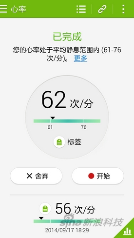 心律检测区域在机身后背摄像头下方,跟闪光灯放置在一起,结合了S Health,它可以通过自发光感应手指尖的脉搏,从而得出心律。另外,心率传感器可以成为第二个快门,更加方便自拍。虽说这两项技术是Note系列首次搭载,但S5应用半年后,用户的那份惊喜感没有那么高了。