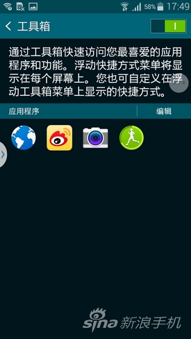 另外“工具箱”选项类似iPhone上的AssistiveTouch悬浮按钮,可以将最常用的几个应用放在那个区域,随时展开。