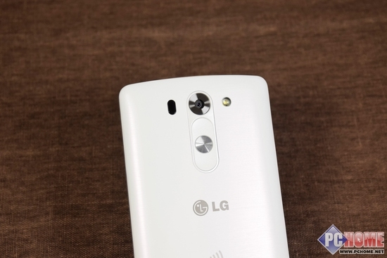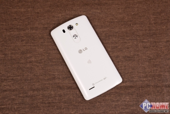 机身背部的设计和G3完全一样,上方是摄像头按键区域,中间是LG品牌和NFC的LOGO,下方是移动4G品牌LOGO和喇叭。后壳材质为塑料,但是依旧具备经过了拉丝处理。