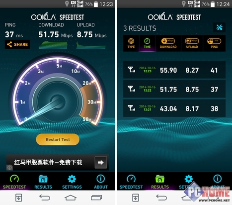 经过实际测试,LG G3 Beat在移动4G网络满格的情况下的表现还是非常不错的,下行速率基本都能维持在50Mbps,延迟方面也表现不错,日常使用时流畅度绝对是没的说。网络覆盖方面,移动4G的表现也是越来越好了,相比早期的覆盖现在已经有了很大的改观。