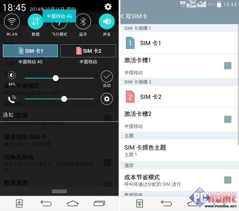 插入双卡后,在任务栏可以快捷切换两张SIM卡,系统设置中也内置了SIM卡管理器,用户可以对流量、通话、短信等设置进行调节。