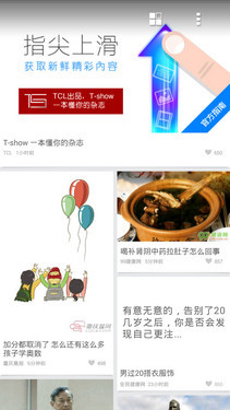 TCL么么哒3N依然采用时下主流的一体化桌面界面,将原生的应用程序界面和桌面界面合二为一,减少了用户的二级菜单操作,而且支持实用的桌面文件夹管理功能。值得一提的是,该机加入了全新的TCL专属阅读器——资讯专家T秀,将众多资讯内容集合在一处,方便用户进行查看,类似于HTC缤纷聚合界面(注:用户在主页界面向右即可调出)。