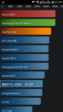 相比其它产品,TCL么么哒3N的得分略逊于三星GALAXY S5,以及小米3,如上图所示。这样的表现,对于一款售价不足千元的智能手机而言,显然堪称卓越。需要指出的是,安兔兔测试得分越高则表示设备性能越强,而不同版本的安兔兔,测试得分则有所不同。