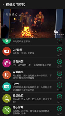 如果用户想使用其它的拍照应用,可通过轻点相机插件模块中的“添加应用”键,即可看到更加丰富的插件模块,像GIF动画、极致美颜、超级微距、 随心对焦等,用于只需点击安装即可添加,当然,如果你只想保留自己常用的几个模块,只要轻按插件模块图标几秒,松手后点击图标上的x即可删除。除此以外, 该机的相机应用专区还会根据用户需求,随后会增加更多新奇好玩的插件模块,至于怎么玩还要靠用户自己来发掘。