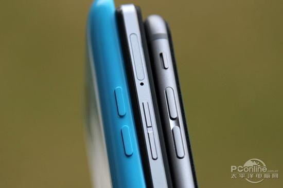 手机后盖的处理方式不同,还影响到手机侧边框的美观性。由于聚碳酸酯的厚度比一般的金属中框厚一些(为了保证手机强度),其物理按键的键程较长,按键突出比较厉害,而金属中框的按键则可以加工地更细致圆滑。无论如何,一体式后盖设计的手机相比普通手机更富有质感。