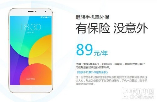 魅族MX4 Pro屏幕左下角开裂,并且金属框有磕碰痕迹,手机屏幕显示正常且能操作。当时随机一同购买了129元的1年意外保险(机型不同售价不同),该服务可在发生意外情况导致故障后免费维修,并且当维修代价过大或无法修复时享有换机服务。