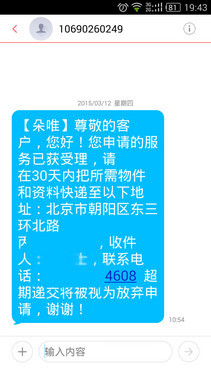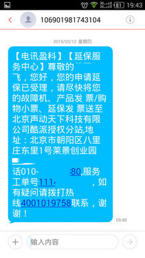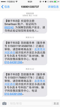 小编当然不可能等两天,再次致电客服。这回客服小哥在询问手机串号后果断表示已受理申请,并给小编手机发送客服地址和电话,并建议小编将手机邮递到售后中心(邮资自行垫付,锤子最多报销20元/单)。