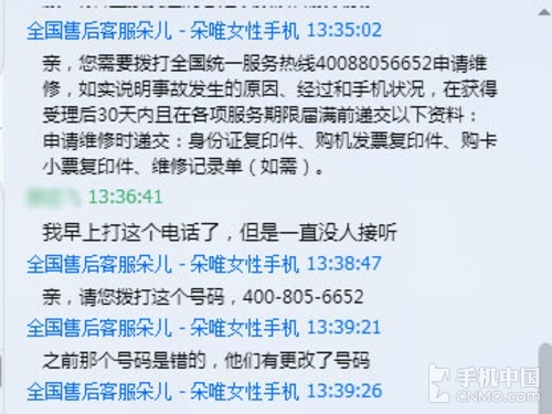 朵唯售后维修过程很复杂,不过客服的态度都很不错。小编第一次拨打客服电话,等待好长时间才接通,客服表示“无忧险”有单独的客服,并给小编提供了电话号码。然后小编拨打“无忧险”客服,拨打多次均无人接听。