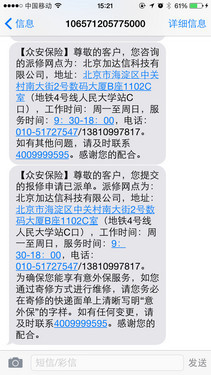 第三天上午小编依然没收到邮件,接近中午,小编再次致电客服,客服表示理赔中心的人暂时不在,马上给我回复。下午2点左右,小编收到邮件,告知邮寄地址和方式,并特别注明,邮资不能到付。