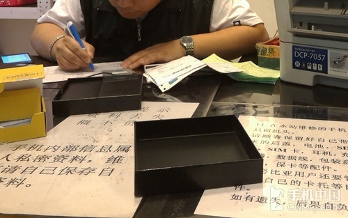 顺利到达中兴授权维修点,工作人员简单查看了下手机的现况以及相关单据,直接告诉小编可以进行免费换屏维修,然后打印出维修证明让小编签字,就可以送到后面的维修部进行维修了。
