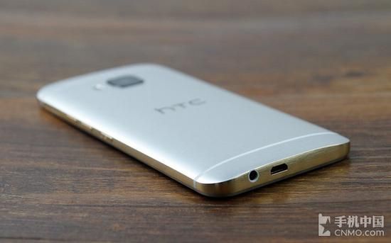 而机身底部则放置了常见的MicroUSB数据接口和3.5毫米耳机插口,方便用户日常使用。此外,HTC One M9依然加入了红外功能,并在机身顶部预留了非金属封装的红外窗口,与前作M8一致,进而保证了红外信号的正常传输。就笔者拿到的“金银汇”版本来说,这样的设计视觉上颇具美感,而并不显得突兀,体现了HTC的设计和工艺水准。