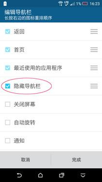 同时,与HTC One M9+一样,这款手机同样允许自定义首页导航栏按钮,用户可以根据需要增加”“返回”、“首页”和“最近使用的应用程序”之外的第四个导航按钮,而且可以随意排布以上三个或是四个按钮的顺序。更重要的是,它新增了“隐藏导航栏”按钮,进而可以有效提升屏幕视野,以及缩减HTC One M9的“下巴”数量(注:大家懂的),一定程度上也满足了用户的心声。