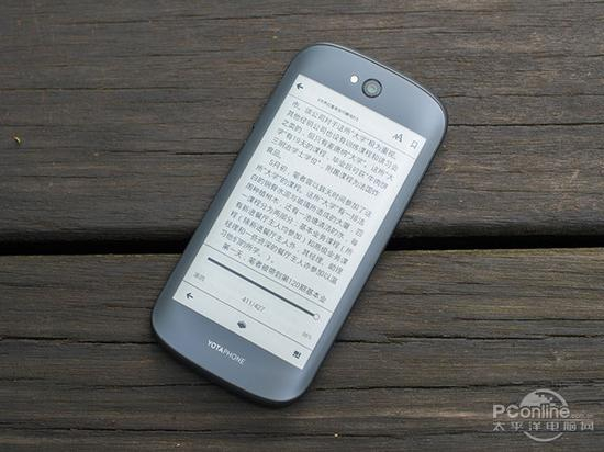 YotaPhone 2这块电子墨水屏具备960x540的分辨率,PPI为235,显示的精细度略高于6.0英寸的Kindle Papaerwhite,再加上磨砂的质感,手感可以模拟真实的纸书效果。