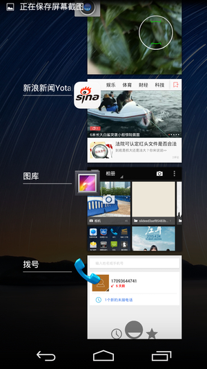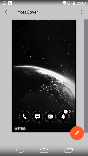 一般情况下YotaPhone 2的背部屏幕只能够用来显示YotaCover和YotaPanel,并不能进行安卓系统的操作。但是YotaPhone 2也提供了将安卓系统映射到背部墨水屏上的功能。开启的方法也很简单,在安卓主界面中长按HOME键呼出按钮,选择最左的那个按钮就可以进行映射了。