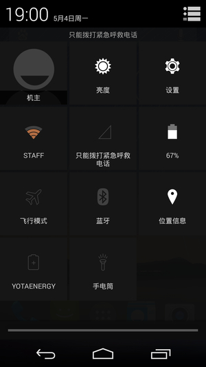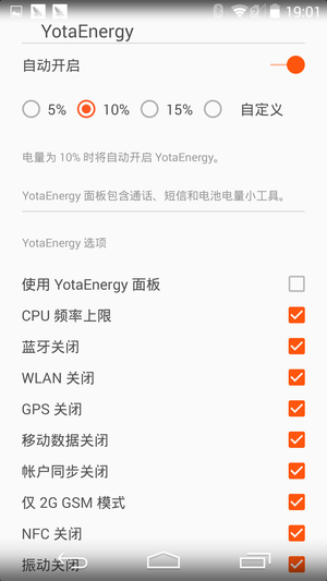 YotaPhone 2针对背部的墨水屏特别加入了YotaEnergy。YotaEnergy这个设置是针对背部屏幕省电的一些设置,用户可以通过不同的调节来改善续航效果。