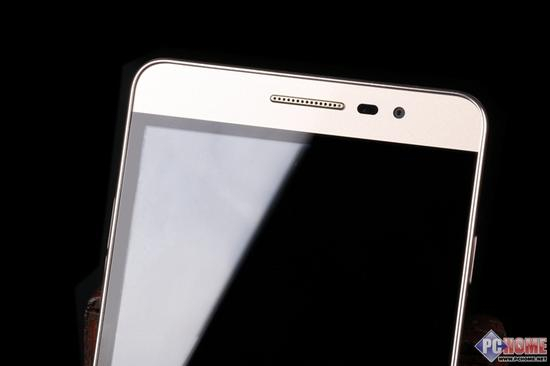 屏幕上方从左至右依次是听筒、光线感应器和前置摄像头。听筒采用长条状多孔设计,细节方面处理的比较到位,做工值得肯定。且表面与周围面板平齐,不用担心积灰。