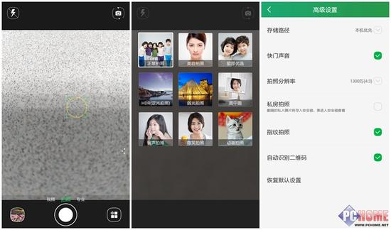 软件方面,锋尚Pro的拍照界面比较简约,取景器有视频、拍照、专业三种模式。支持常用的HDR、美颜、弱光拍摄等。另外还支持指纹拍照,在拍照的时候可以获得更好的稳定性,以保证画质。