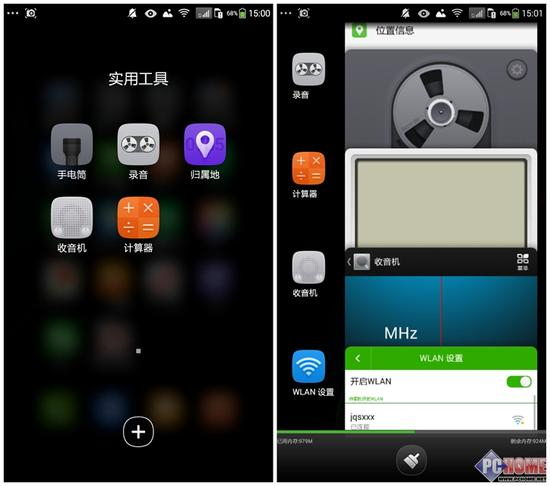 锋尚Pro预装了一些运营商的应用,但是可以自由卸载,无需Root。应用采用了单层级设计,支持文件夹管理。多任务界面采用卡片式切换,可以显示内存使用信息,支持一键清理后台,并支持白名单锁定。