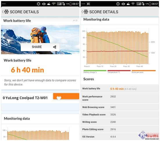 而在电池续航方面,锋尚Pro给了我们一个惊喜,Work battery life的成绩为6小时40分钟,在2500mAh的电池容量下能够取得这样的成绩值得肯定。而在实际的使用中,正常情况下,锋尚Pro保证一天的使用还是没有问题的。