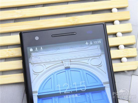 而屏幕边缘与边框的过渡位置采用了圆弧形的过渡,给人十分平滑的感觉,手机上端和下端采用了金网的塑料图案,不仅加厚了商务气息,同时也提升了手机的档次。