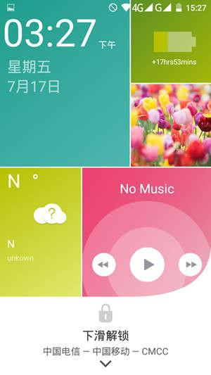 解锁采用清新风格右滑可以看到日期,天气,和电量剩余的确挺贴心。桌面界面图标这使用可卡片式的绘制风格,尺寸比较大方便触摸。高饱和度的色调让这款商务机充满了时尚的气息。