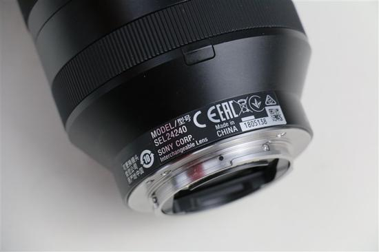 这款镜头背部设计很简洁,除了粘贴的产品铭牌外没有过多的文字或图案标注。从镜头底部的产品铭牌上我们可以看到,索尼24-240mm镜头的产地为中国。