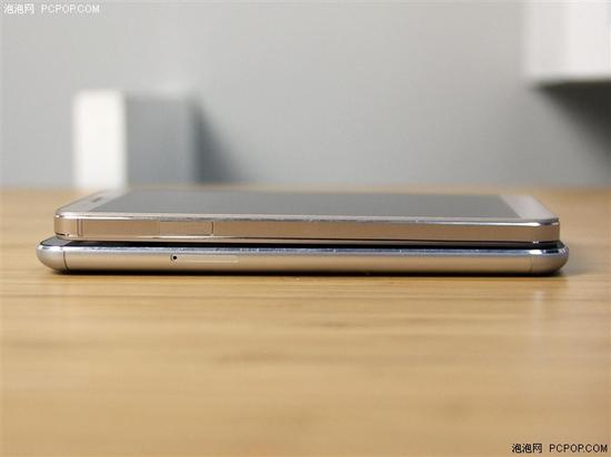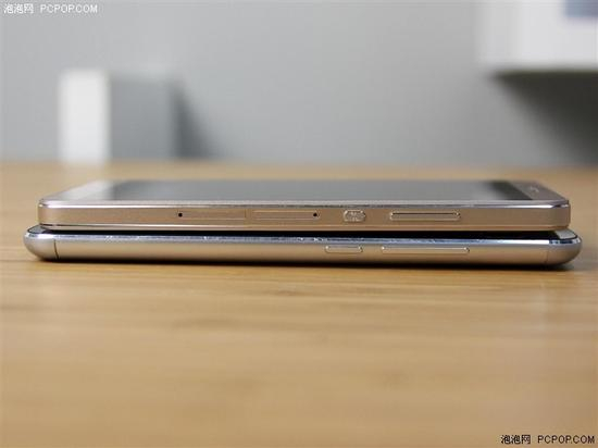 荣耀7i机身右侧从上到下依次为音量点、电源键和两个卡槽,上面的卡槽支持装SIM卡和SD卡扩展,因为机身右侧的内容太多,显得有些杂乱。魅族MX5的机身右侧仅有电源键和音量键,显得更为简洁一些。