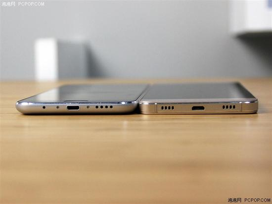 两款手机的机身顶部均为耳机插口和降噪麦克风,底部均为扬声器和电源接口。荣耀7i机身底部的开口采用了对称设计,更符合视觉上的美感。