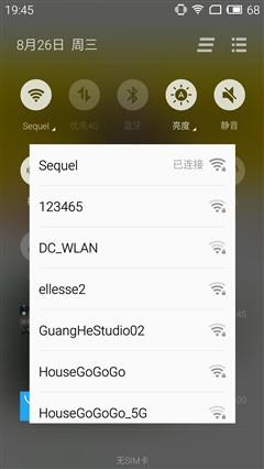 Flyme的下拉通知栏大家都比较熟悉,快捷按钮和通知都集成在了一屏,点击右上角的设置可以找出更多的快捷按钮。点击WiFi按钮下面的小三角能够快捷查看当前可以连接的WiFi,免去了还要进去设置APP查找的麻烦。