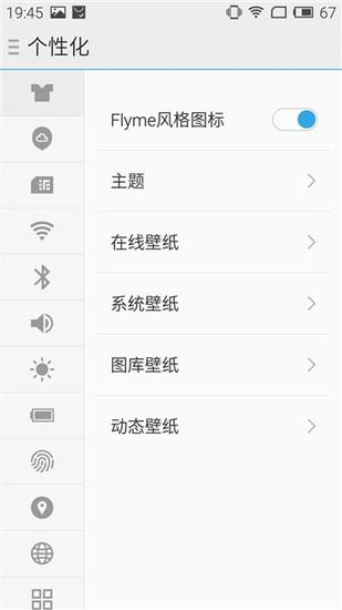 Flyme则采用了类似iOS的设计,每一种设计在左边通过一个图标进行分类,有什么功能一目了然,更为直观一些。