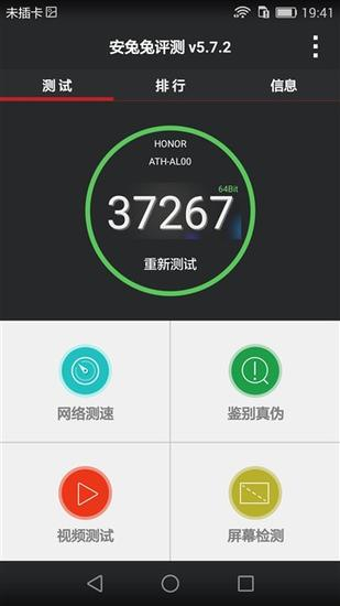 荣耀7i的安兔兔跑分为37267,远落后于魅族MX5。荣耀7i搭载骁龙616处理器,该处理器属于骁龙615的小改款,在制程工艺方面的进步,使得CPU主频方面得以提升,并且能控制好功耗。