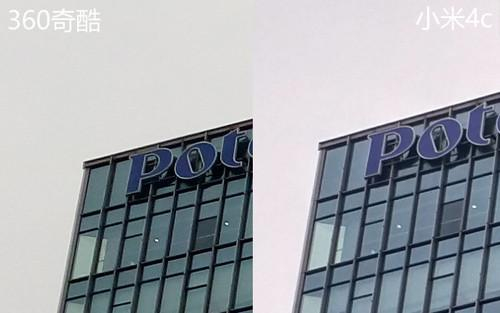 先来看看远景拍摄,通过样张对比来看,小米4c在拍摄时拉高了整体的亮度,天空显得有些发红,大楼的颜色也相对发白。360奇酷手机青春版的白平衡表现正常,是阴天的调调儿。
