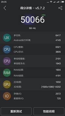 通过安兔兔跑分测试来看,360奇酷手机青春版(双4G)得分31529,小米4c高配版得分50066,从数据上看差距还是比较大的,小米4c高配版在跑分这项对比中赢得了胜利。