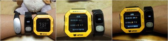 而在记步上,笔者将另外一款手环及手表、HeHa手环一起来做测试,200步后,手表显示205步、手环的客户端同步后显示207步,误差都在个位数,HeHa手环减去之前的步数后实测步数是216步,误差在16步之多,还是比较难以接受了。