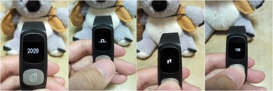 HeHa手环的小小液晶屏上,可以显示时间、心率、记步、距离、运动时间、消耗热量以及电池电量,每按一下金属按钮切换一次功能项。