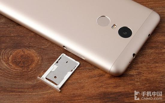 与双网通版本一样,红米Note 3全网通版也支持双卡双待功能,不过却采用“MicroSIM卡+nanoSIM卡/MicroSD卡”设计,与红米3一样,适合更多用户。至于卡托则依 然是塑料+金属材质打造,如下图所示,相比手机的金色金属机身存在一定的违和感。或许,在红米的下一代产品中我们会看到其工艺的改变。