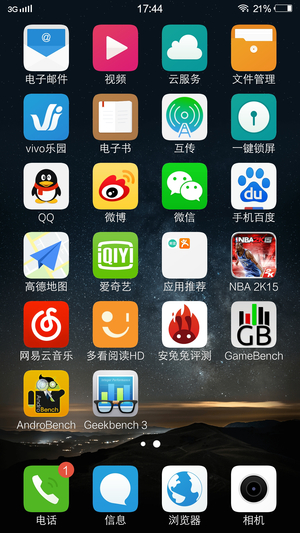 vivo Xplay5搭载的是基于安卓5.1系统深度订制的Funtouch OS 2.5,UI界面采用了时下流行的扁平化设计,统一的圆角矩形图标样式配合上简单的配色显得清新明晰,同时还重绘了部分应用图标,使得整体界面看起来很整洁。