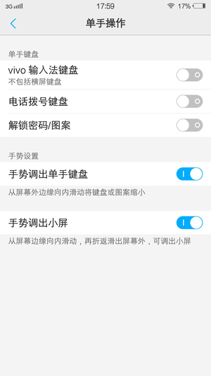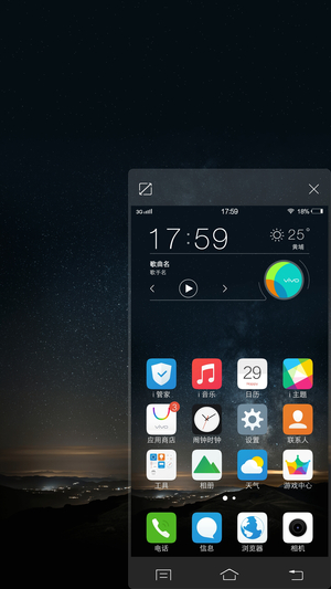 在智能手机趋于大屏化的今天,大屏的优秀视觉体验和单手操作的便捷性似乎难以兼得,因此“夹缝中求生”的厂商不得不寻求一个兼顾两者的方法,而 vivo 就是那个先行者——“单手操作”模式。通过手势可调出便于单手操作的小屏,看起来就像“屏中屏”一样,此外,这个小屏还可以根据用户需求自由调整大小和位 置,使用起来和“非单手”模式没有任何区别。