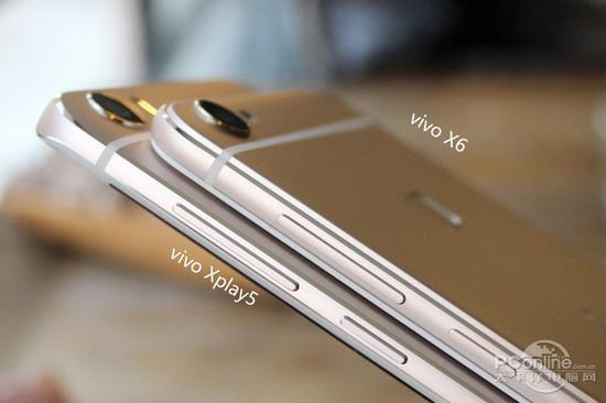 上述小编已经提及了Xplay5和X6的后盖设计非常相似,但如果仔细对比的话,可以发现Xplay5的细节设计要更加精致,如Xplay5的摄像头突出厚度以及背盖指纹识别区域的下陷程度都已经明显的缩小,机身看起来也更加平整。
