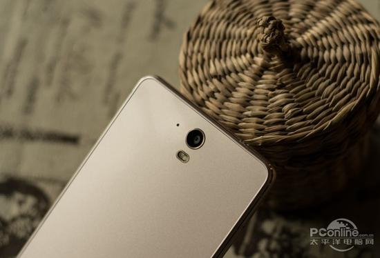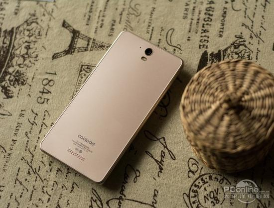 手机背面是一整块光亮的玻璃,上面依次分布有后置摄像头、闪光灯、酷派Logo和扬声器。虽然锋尚mini的机身很薄,但摄像头依旧与机身持平,不“激 凸”的造型会为后期使用省心不少。但扬声器也与机身相平就使得使用时容易出现误遮挡的问题,也算是对设计美感一个妥协吧。