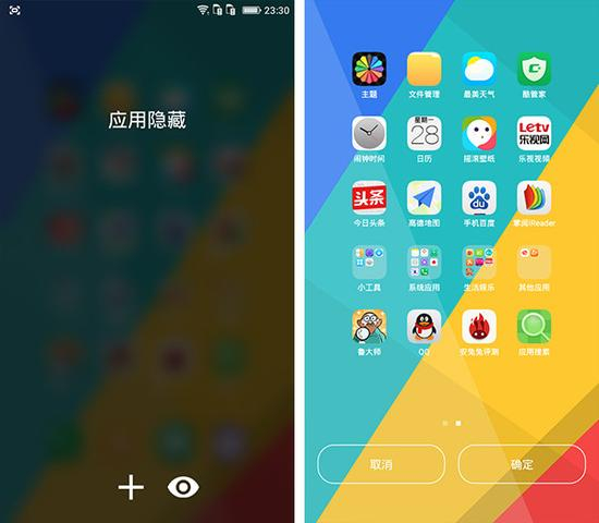 Cool UI 8.0系统在很多方面都有人性化的小创新,例如应用隐藏功能可以将一些隐私信息较多的App进行隐藏,避免将手机外借时被意外看到。智能整理则是对应于现 今用户日常交互而开发的懒人应用,打开App后系统即会自动将第三方App整理至分类文件夹中,识别率还算不错。