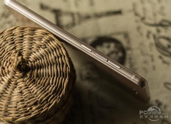 或许是出于手感方面的考虑,酷派锋尚mini的金属边框采用较窄的倒角切边设计,配合细磨砂喷漆有着不错的触感。条状的音量键和电源键均被放置在右侧, 按键的手感适中,但键程稍短,会有较易误触的烦恼。边框左侧设有“与或卡托”式的卡槽,支持全网通双卡双待或在单卡的情况下放入一张内存卡作拓展。